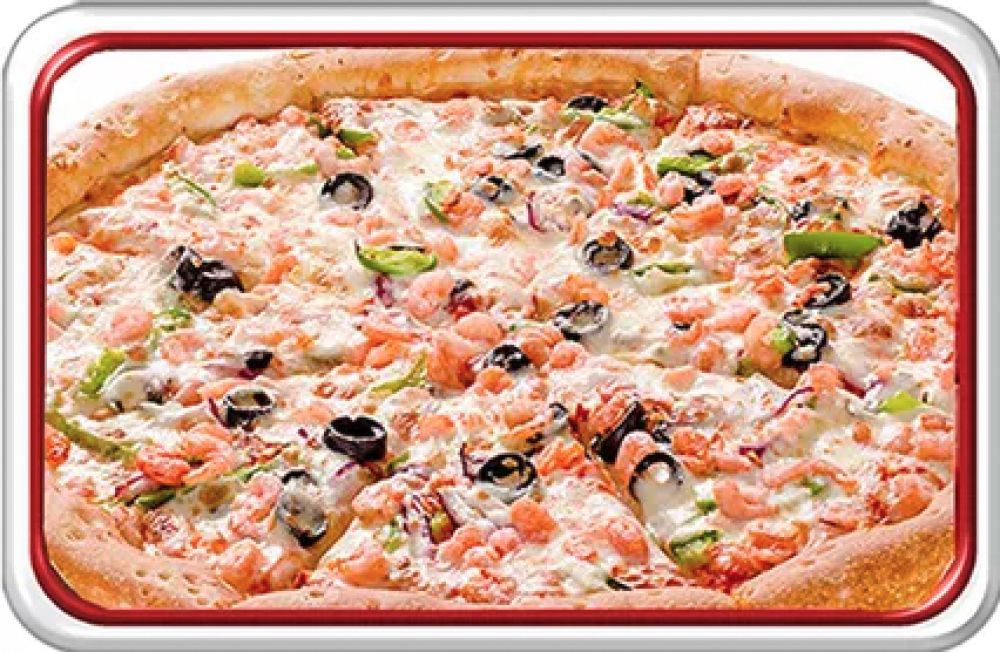 Итальянский соус со специями, маслины, креветки, сладкий перец, красный лук, моцарелла