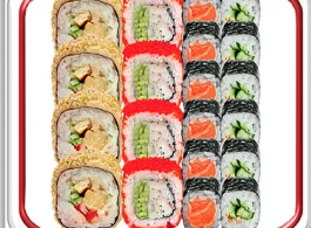 Ролл Европейский-4шт. Ролл Калифорния классик-4шт. Ролл лосось с/с-6шт. Ролл огурец-6шт.