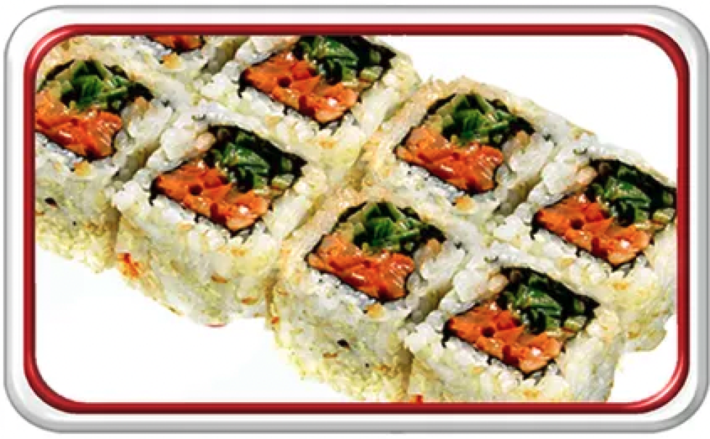 Тигровые креветки, огурцы, спайси соус, кунжут, рис