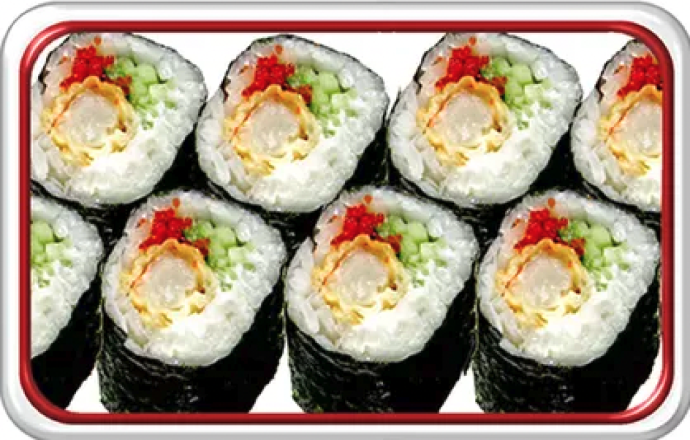 Креветки обжаренные в кляре, сливочный сыр, огурцы, икра Тобико, рис
