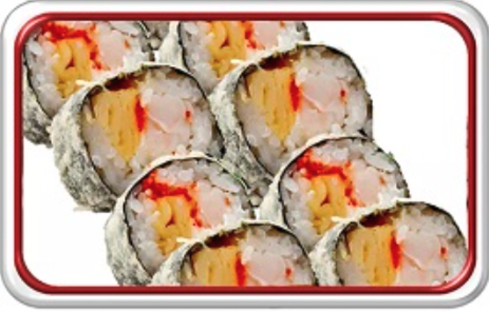 Снежный краб, омлет, сливочный сыр, икра Тобико, рис