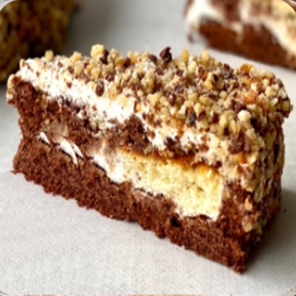 Белый и шоколадный бисквиты, прослоенные сметанным кремом.