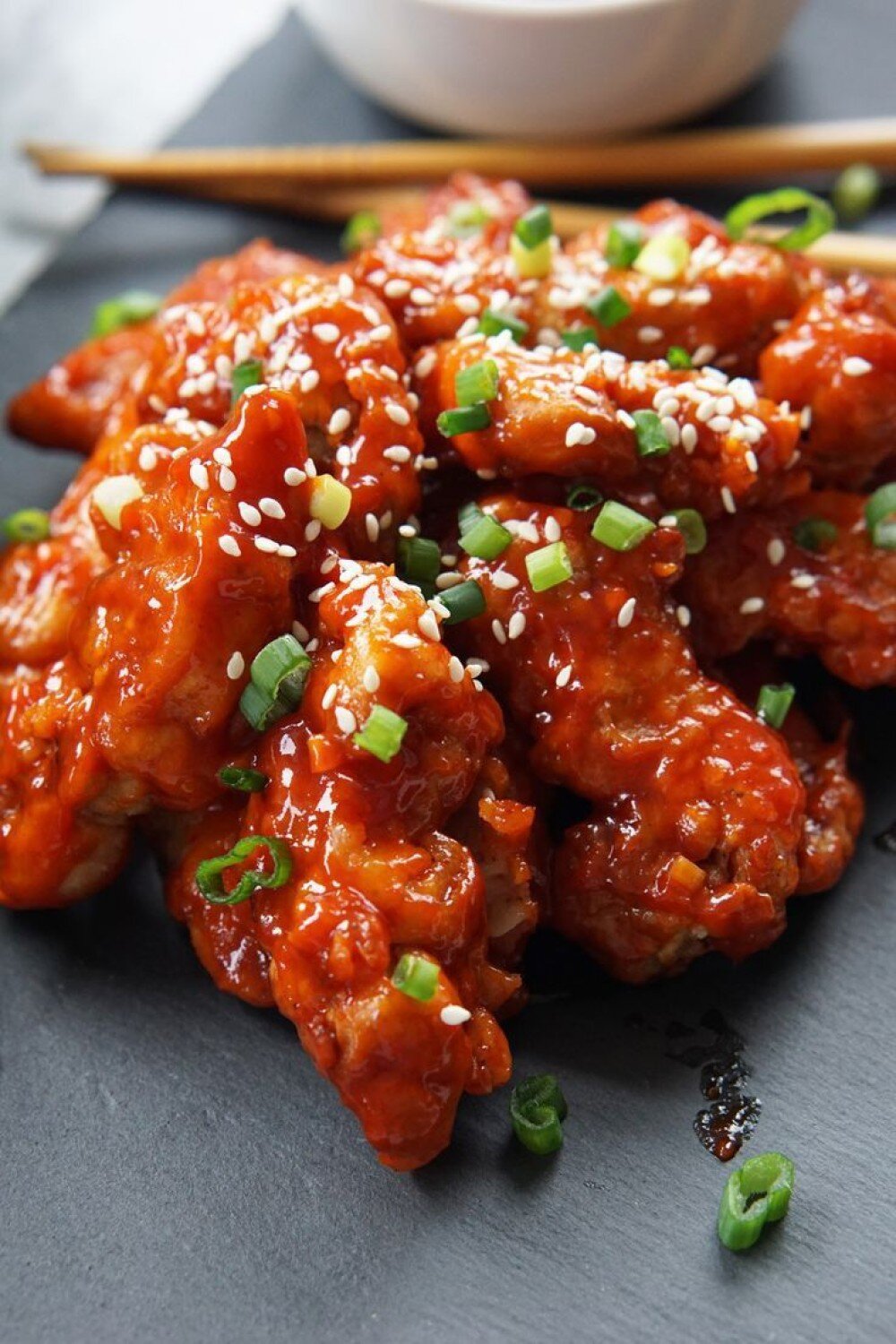 Знаменитые корейские крылышки в сладко-остром соусе.